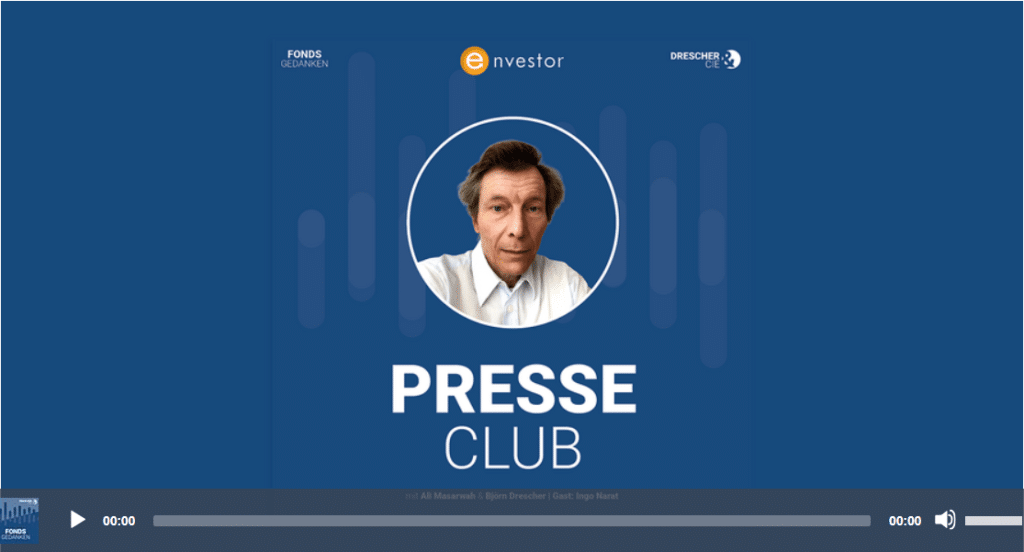 Das eingespielte Presseclub-Team Ali und Björn bekommt nach acht Folgen Verstärkung – jedenfalls von Fall zu Fall: Ingo Narat, wohl einer von Deutschlands bekanntesten Fondsjournalisten, verstärkt nach seinem „altersbedingten“ (sorry, Ingo!) Abschied vom Handelsblatt DRESCHER & CIE. Er wird an neuen journalistischen Formaten mitwirken, die unter dem Dach der Fondsplattform entstehen. Nach über 35 Jahren beim Handelsblatt lag es nahe, dass sich das Trio auch über den Wandel der Medienlandschaft unterhält. Die Top-Themen waren aber das Comeback der Geopolitik und die Reform der Altersversorgung (Stichwort: Riester 2.0): Wie faktoriert man den Putin- oder Trump-Effekt in die Investmentstrategie ein? Gelingt der GroKo das, was der Ampel versagt war – nämlich eine Reform der privaten, geförderten Altersvorsorge, die den Namen verdient?